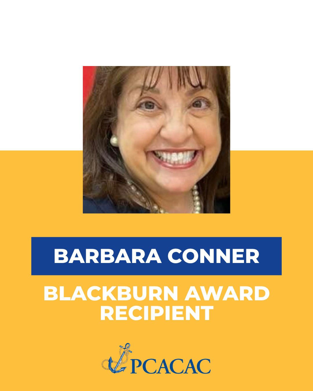 Membership in PCACAC is not a criterion for selection but consideration will be given to professionals in the PCACAC region. The recipient is honored with an engraved plaque and, for one year, will keep the Blackburn Award, a perpetual plaque engraved and embossed with the PCACAC logo listing the names of all recipients. The selection committee is comprised of members of the PCACAC Past Presidents Committee. For questions or additional information, contact Anthony Ambrogi, Chair of the Past Presidents' Committee. In Recognition of our 2026 Award WinnerBarbara Tragakis Conner